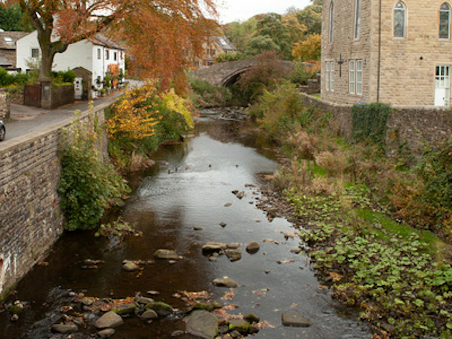 Higherford Mill was built by Christopher Grimshaw as a spinning mill in 1824, close to water to harness it for powering the looms. Water was taken from the river from a weir, half a mile upstream, and channelled to a mill dam or lodge, and then through sluices into the rear of the Mill, onto a breast-shot waterwheel.